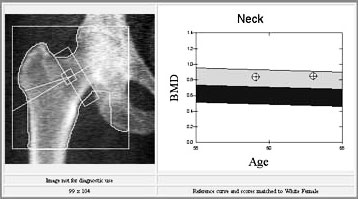 Rentgensko snimanje kostiju nesigurna je i neprecizna metoda. Greška u procjeni koštane mase je 30-50%. Na osnovu ove pretrage pouzdano se postavlja dijagnoza osteoporoze tek kod gubitka koštane mase većeg od 30-40%. Na osnovu gustoće kosti (mjeriti će se lumbalna kralješnica i bedrena kost / kuk) ljekar će moći procijeniti u kakvom su stanju Vaše kosti (tj. radi li se o osteoporozi ili ne) i preporučiti Vam daljnje postupke, odnosno najbolju terapiju za Vas.